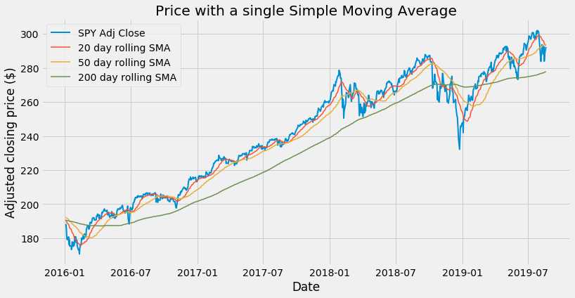 | Adj Close | SMA 20 | SMA 50 | SMA 200 | |